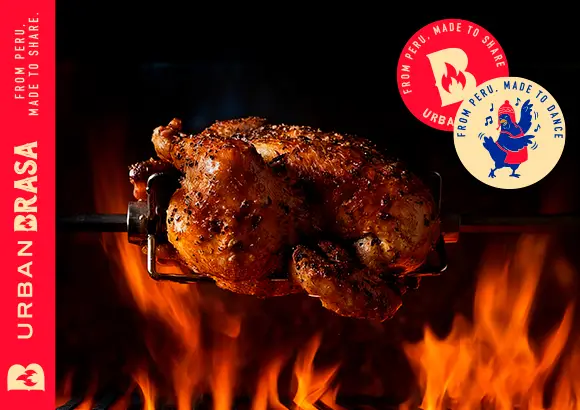 Slow-roasted rotisserie chicken infused with bold spices and incredible smoky taste. Not your regular rotisserie chicken — this is Peruvian charcoal-fired chicken, juicy, crispy, and packed with unforgettable flavor